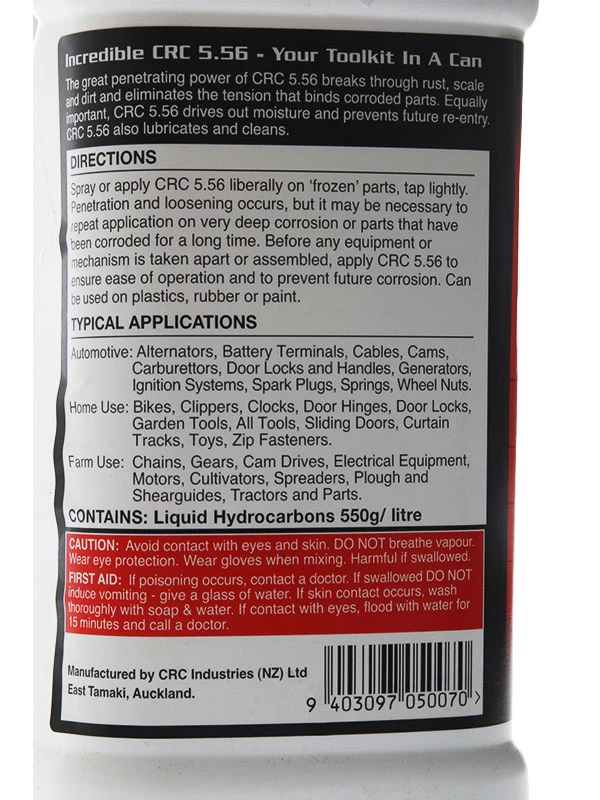 CRC 5-56 The Original Multi-Purpose Lubricant Features: