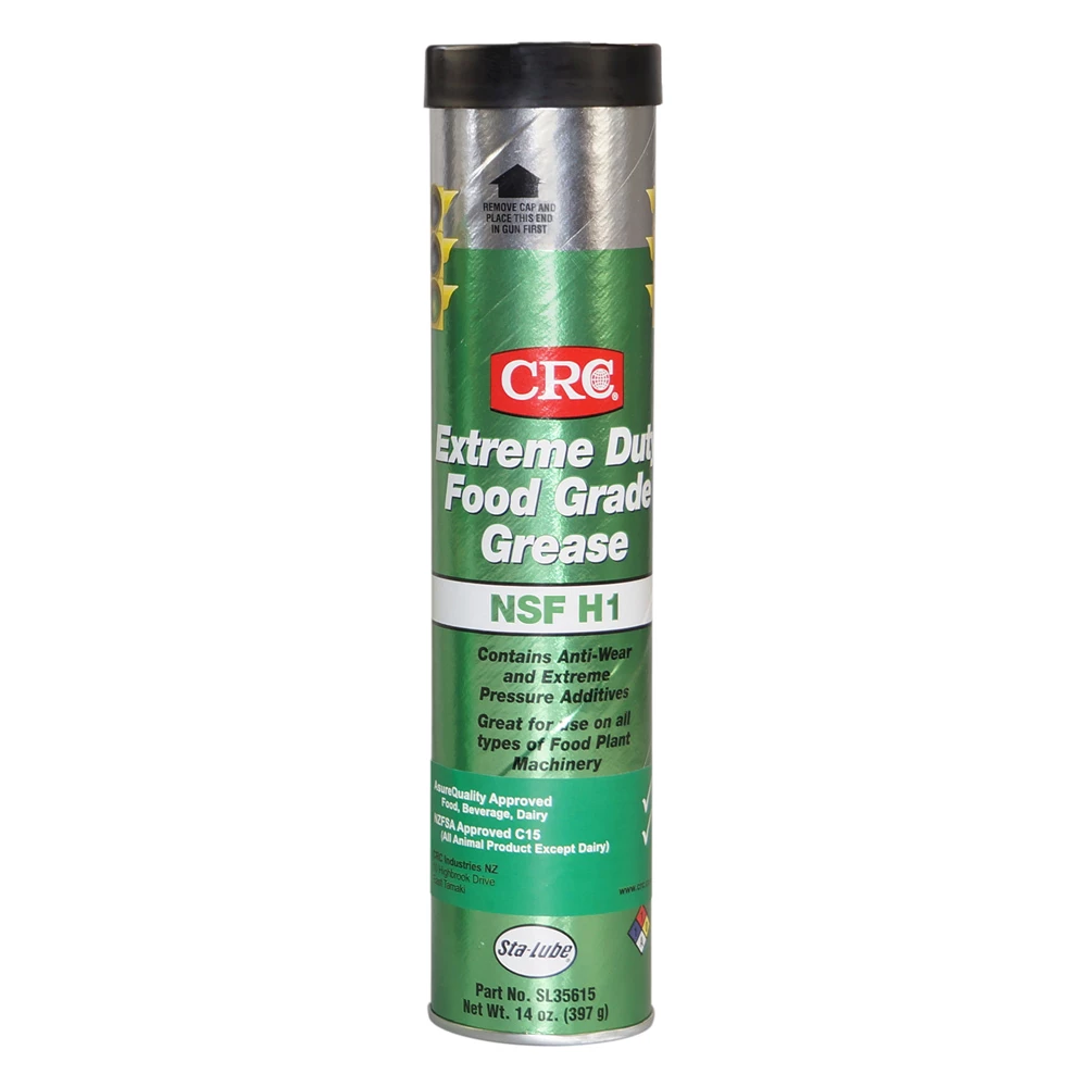 CRC Food Grade Extreme Duty Grease formulation provides unsurpassed resistance to oxidation and corrosion including salt spray. It is resistant to moisture, water and detergent wash down. CRC Food Grade Extreme Duty Grease has exceptional mechanical stability even in the presence of water. It is non toxic and contains no heavy metals or other environmentally undesirable additives.