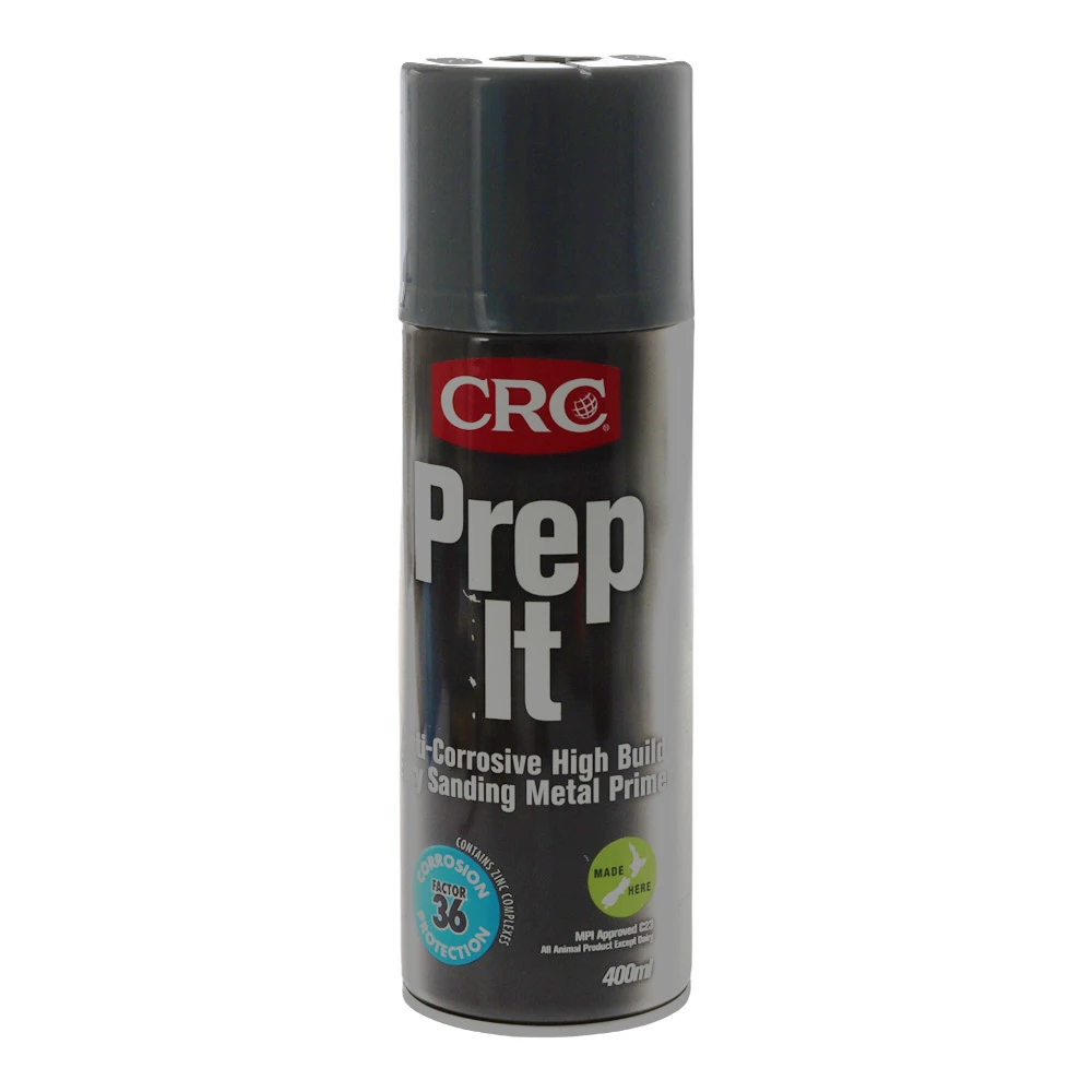 CRC Prep It Sanding Primer is a high build easy-sanding metal primer with a grey finish. Formulated with anti-corrosive zinc complexes, it outlasts most high build primers by inhibiting corrosion and forms a quick-drying protective coating with excellent adhesion to bare metal. Ideal as a general purpose primer and filler coat over bare metal or as an intermediate coat over CRC Zinc It, Prime It, Rust Converter or Etch It or to facilitate high build and prepare surface prior to finish coating. It can be applied directly over CRC polyester automotive fillers.
