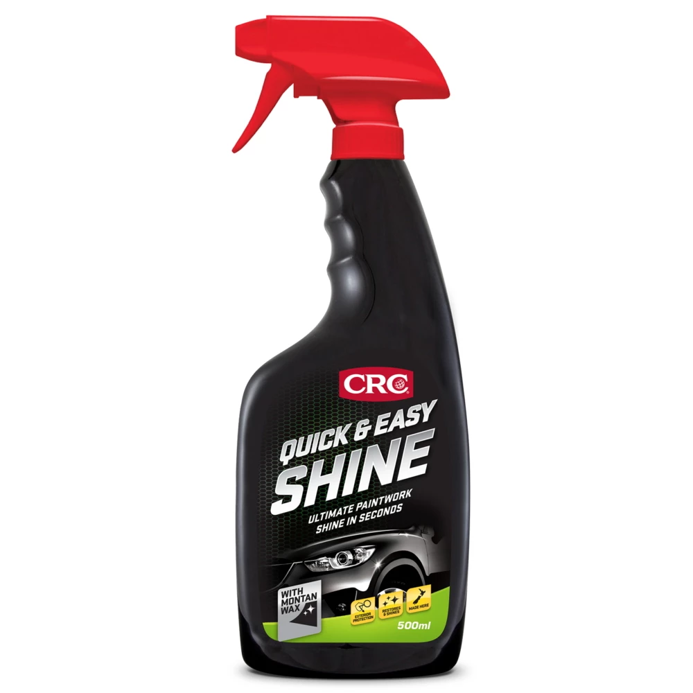 CRC Quick and Easy Shine is a quick and easy way to shine in between washing and waxing. The spray on, wipe off application is a convenient way to maintain and enhance all vehicle colours in seconds. Blacks blacker, colours brighter.
